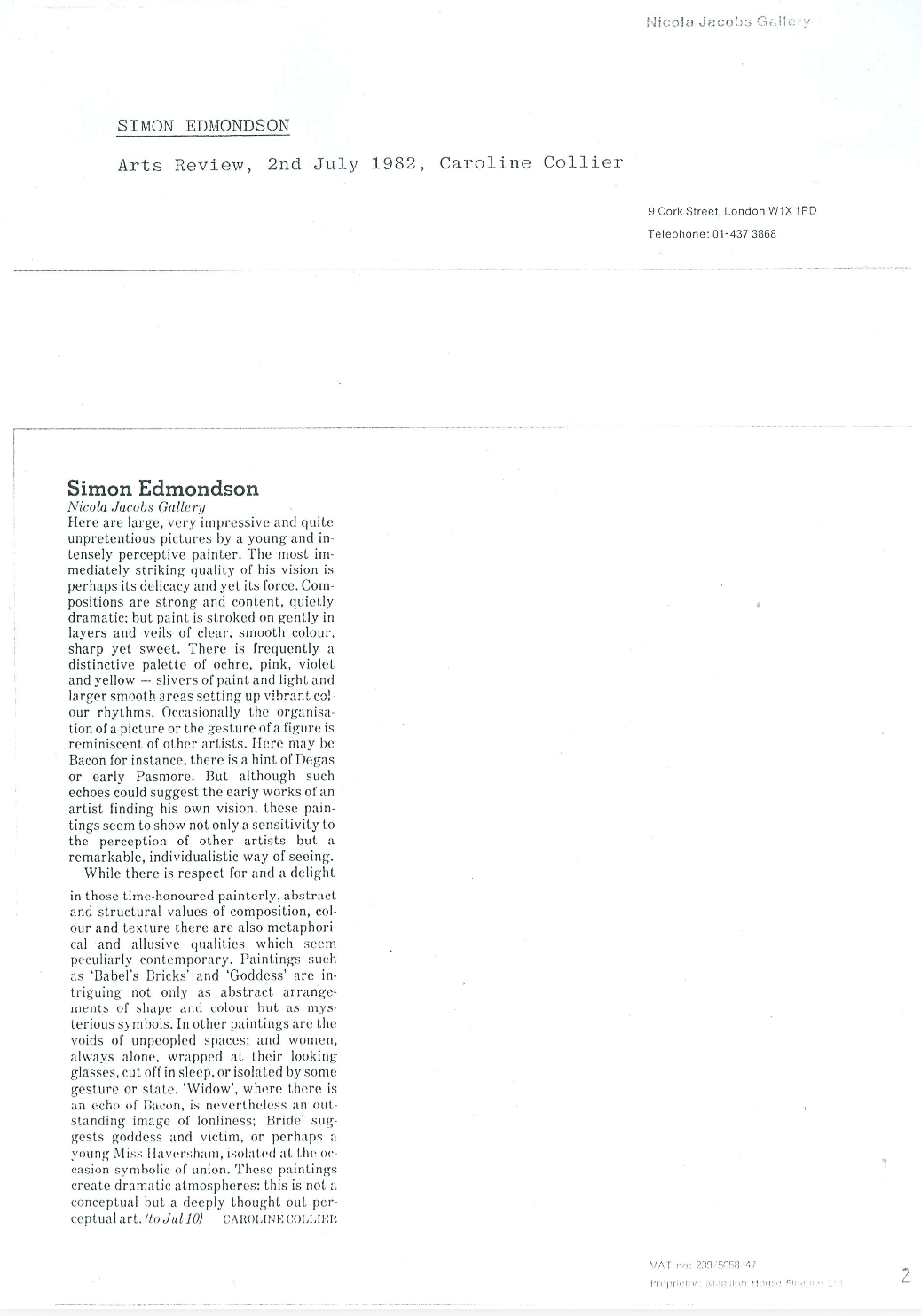 Arts Review, Caroline Collier